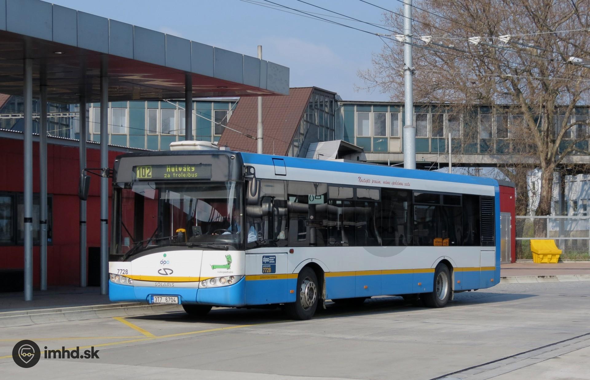 #3T7 6704, 7728, route 102, Nádražní ul., zastávka Hlavní nádraží