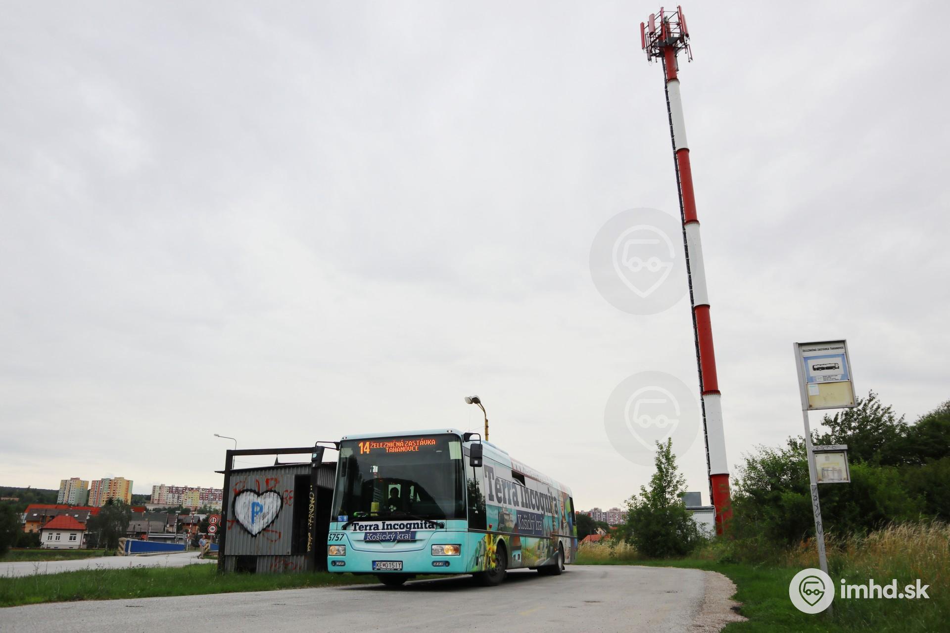 #5757, route 14, Kostolianska cesta, zastávka Železničná zastávka Ťahanovce