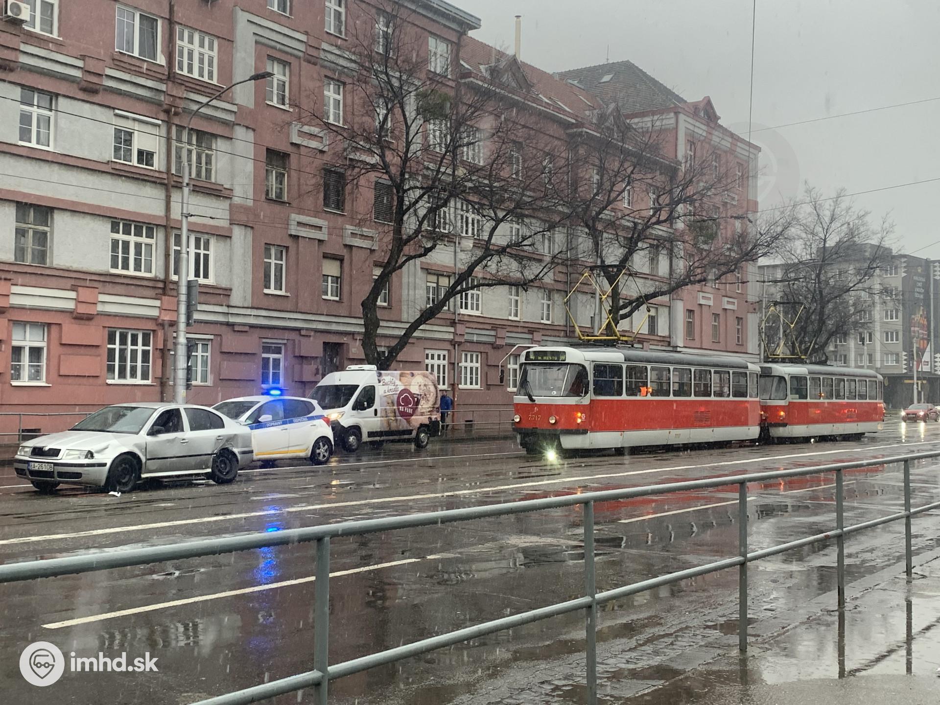 7717 šla z Trnavského na Nové Mesto a uviazla na 2h. Nemala ani škrabanec, len tam čakala.