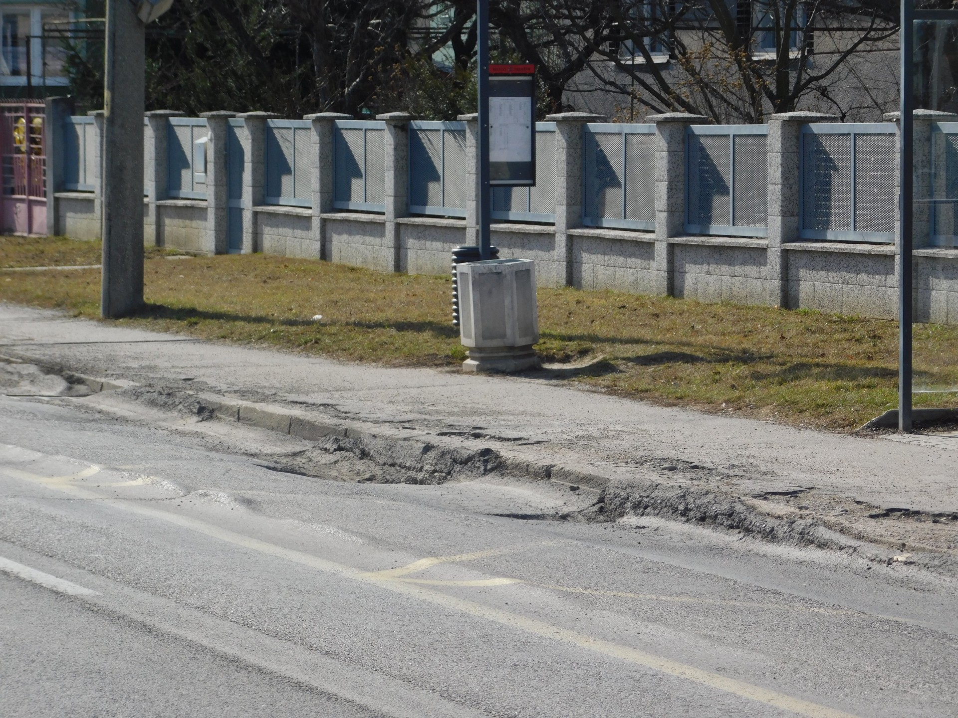 Poškodená zastávka Inovecká smer Juh.
