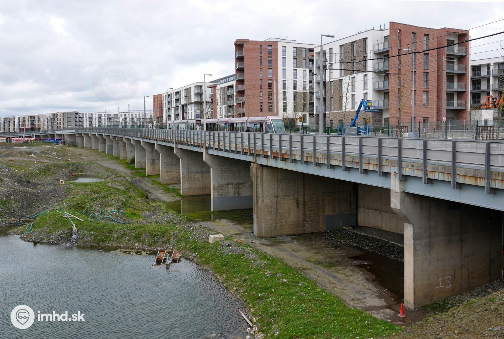 Záverečný úsek zelenej linky vedie po estakáde pri nových štvrtiach. Otvorený bol v roku 2010.