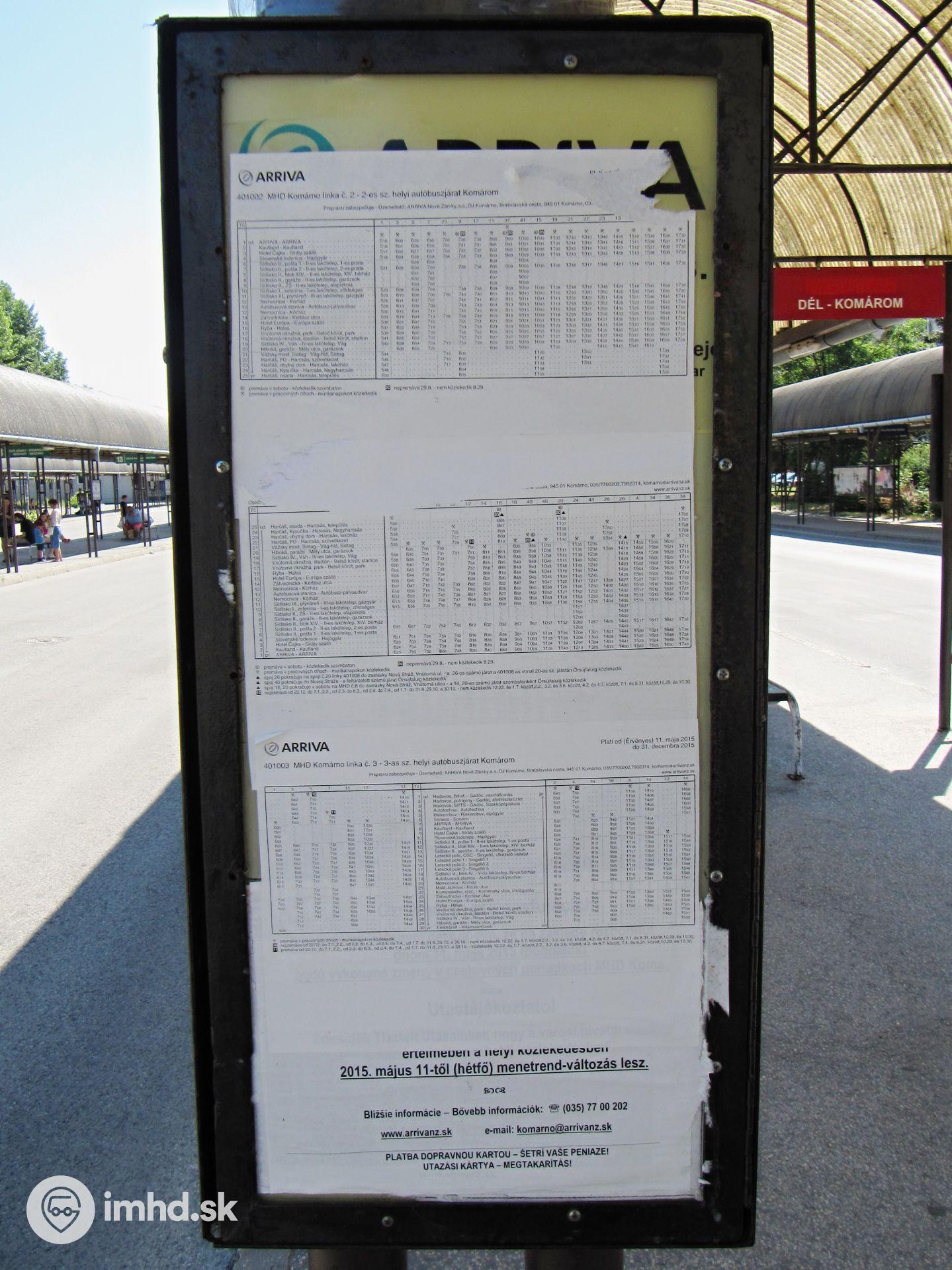 Cestovné poriadky a oznam na nástupišti pre MHD