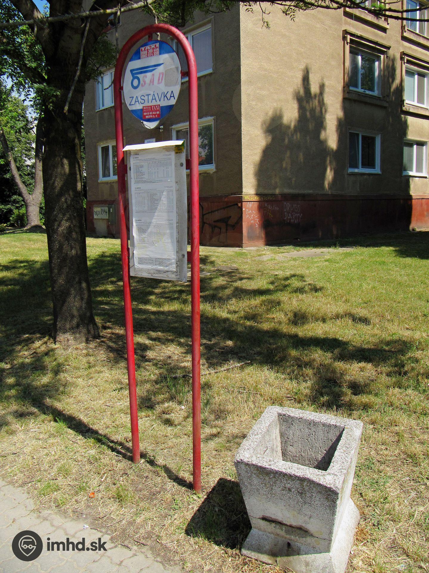 Označník na zastávke Vnútorná okružná, park.