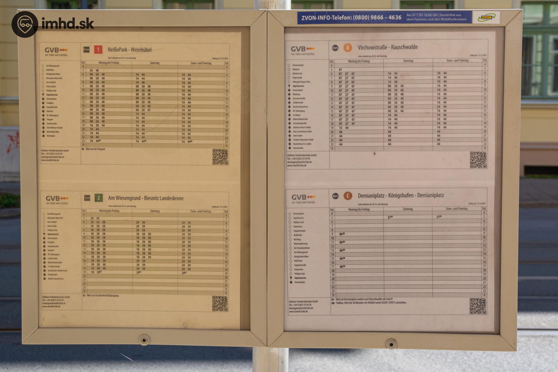 Route 1, 2, B, C, Grüner Graben, zastávka Jägerkaserne