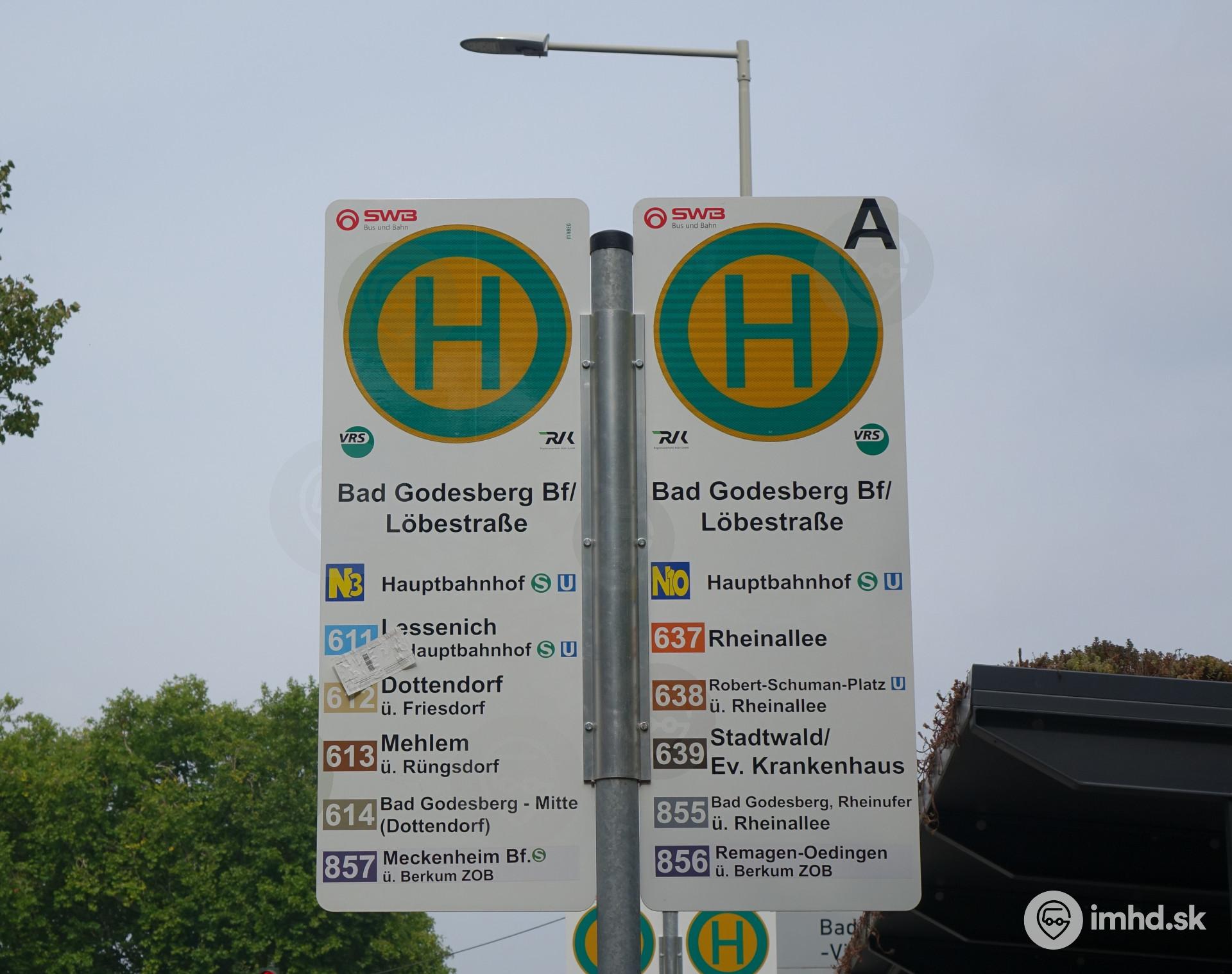 Route N3, N10, 611, 642, 613, 614, 637, 638, 639, 855, 856, 857, Bonn Bad Godesberg Bf / Löbestraße
