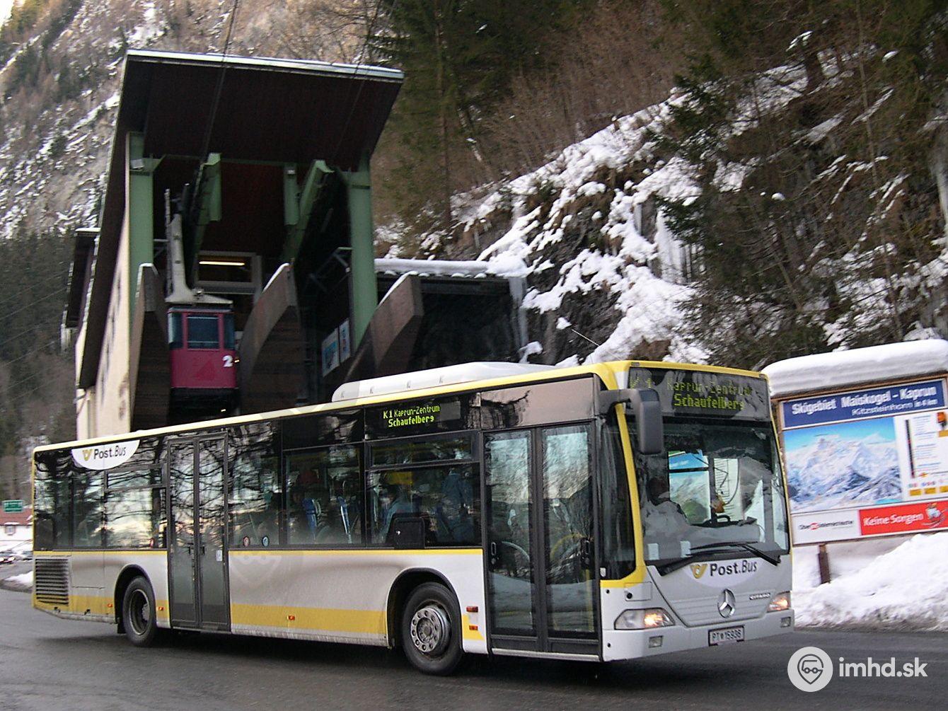 Mercedes - Benz O530 Ü Citaro ako skibus medzi lyžiarskym strediskom Kaprun-Kitzsteinhorn a obcou Kaprun pred stanicou lanovej dráhy Maiskogelbahn