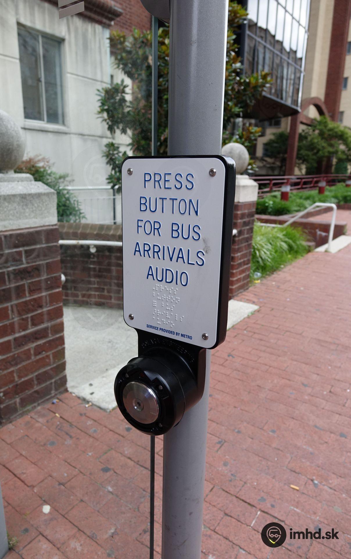 Nevidiaci a slabozrakí cestujúci majú možnosť získať informáciu o najbližších odchodoch na zastávke po stlačení príslušného tlačidla.