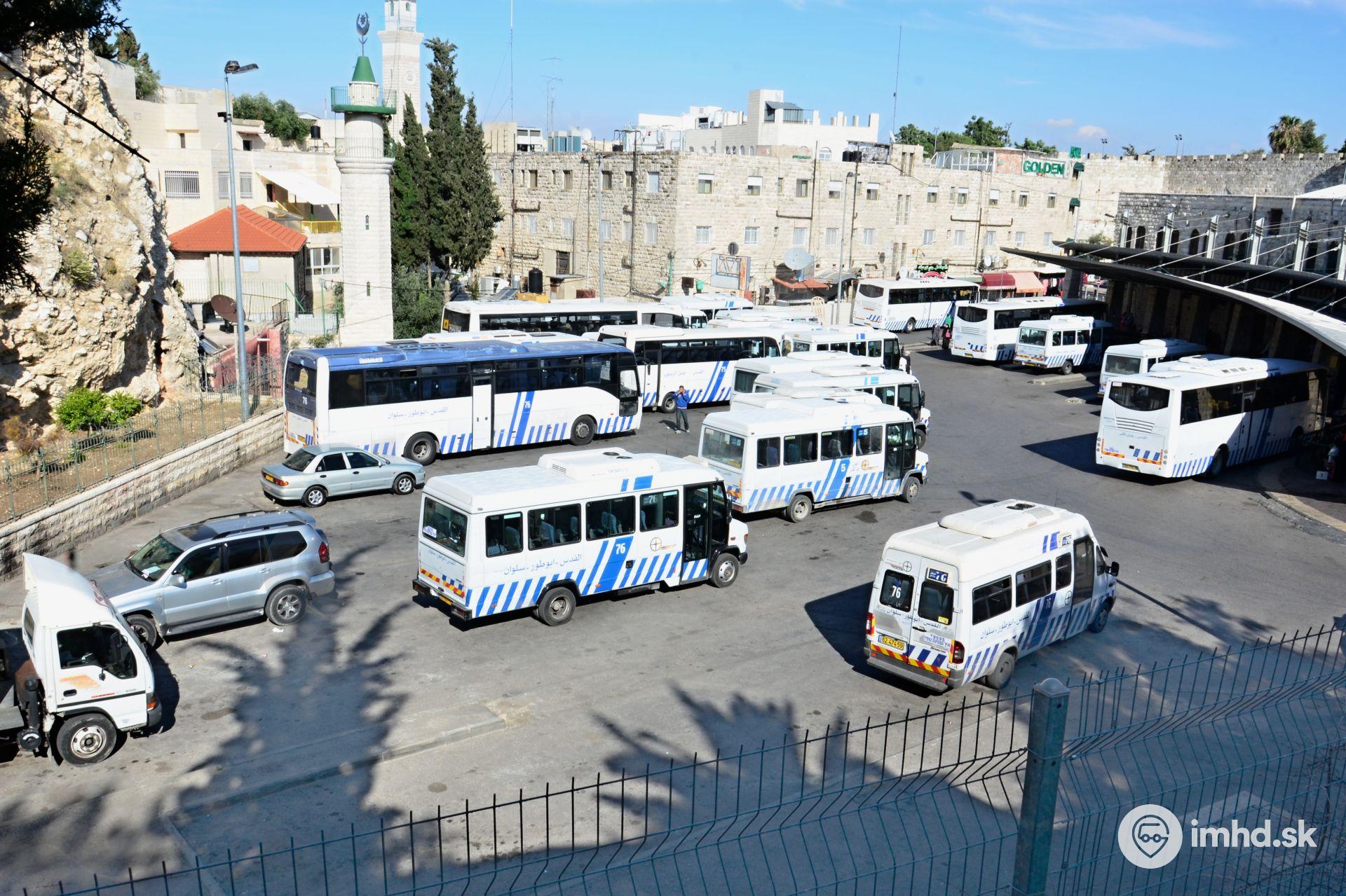 Autobusová stanica neďaleko Sultan Suleiman street odkiaľ chodia autobusy na Západny breh Jordánu