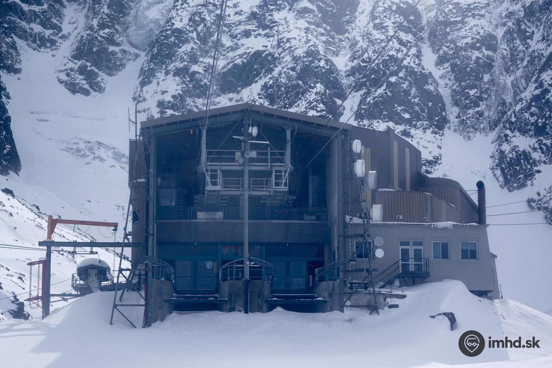 Stredná stanica lanovej dráhy na Aiguille du Midi s ľadovcom viditeľným v ľavej hornej časti.