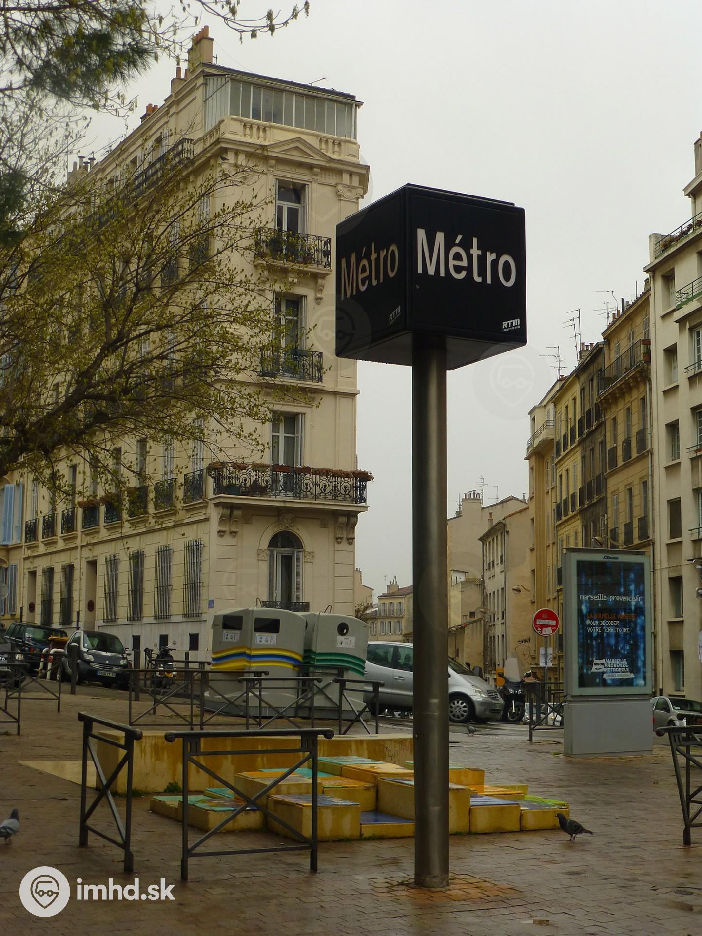 Označník stanice metra Cinq Avenues Longchamp.