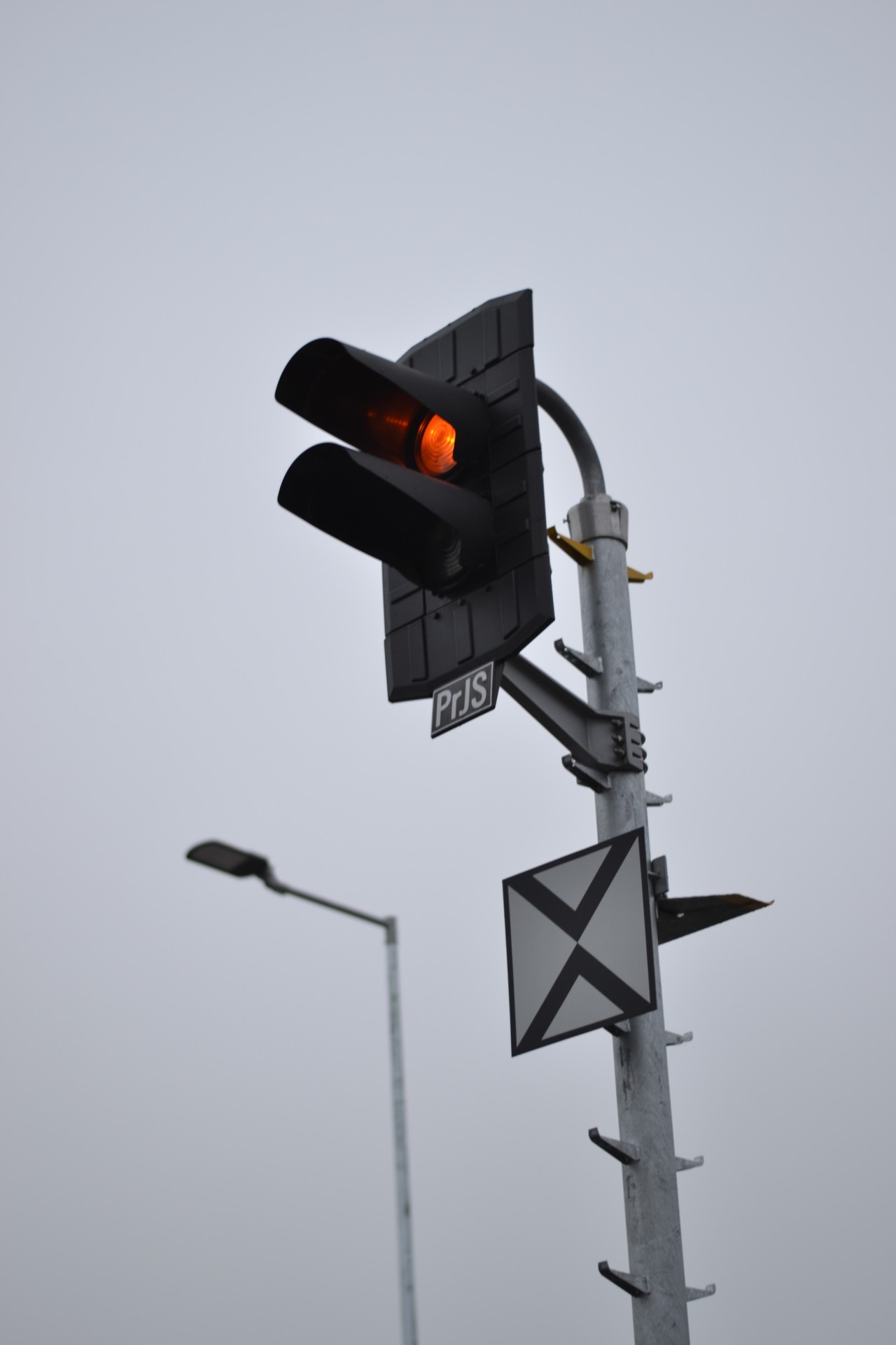 Predzvesť pred dopravňou s koľajovým rozvetvením (v tomto prípade predzvesť vchodového návestidla JS žst. Moldava nad Bodvou.)
