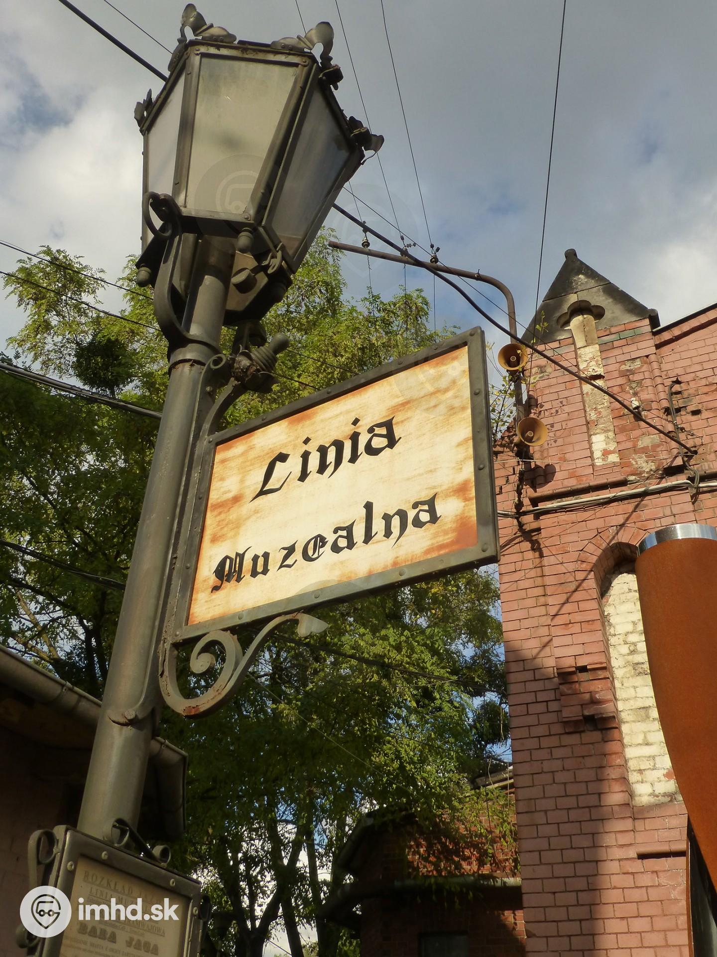 Označník muzeálnej linky v areáli starej električkovej vozovne Popowice