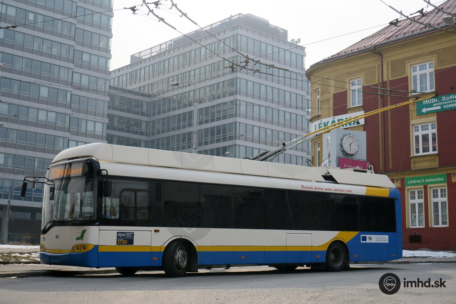 Solaris Trollino 12 II #3730 pôvodom zo Švajčiarska prestávkuje v obratisku Náměstí Republiky.