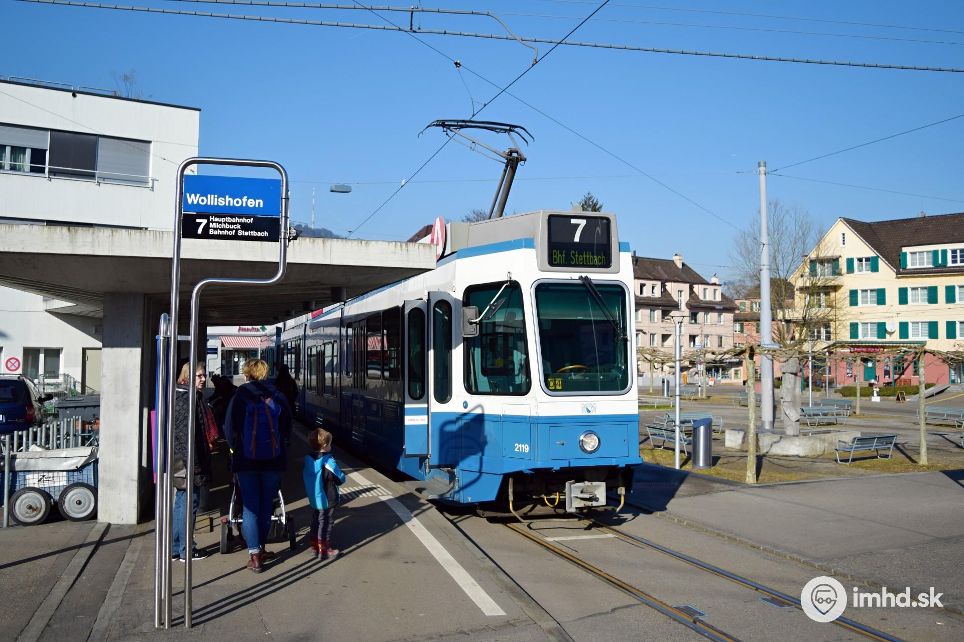 Tram 2000 #2119 v zastávke Wollishofen