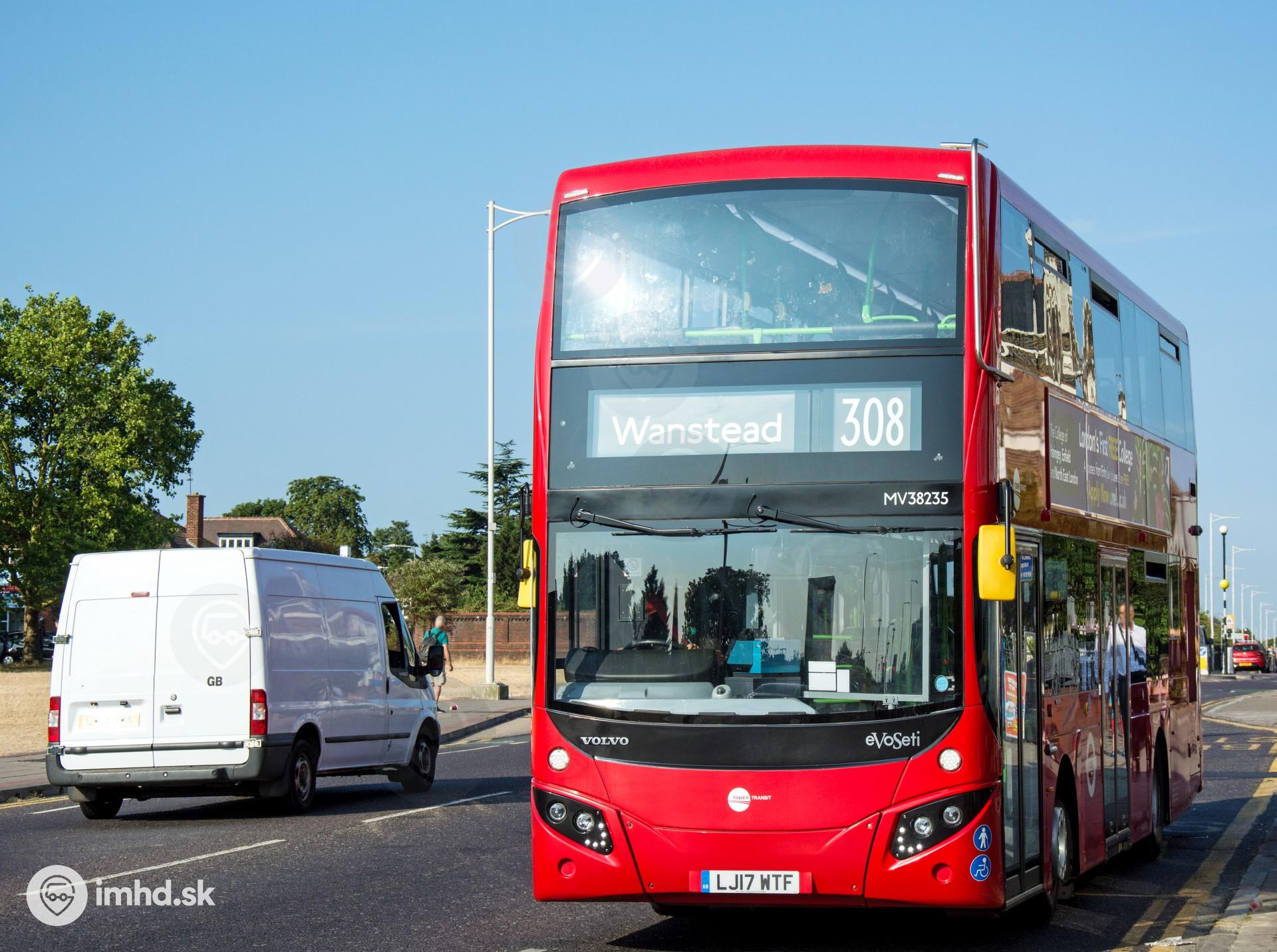 MCV EvoSeti / Volvo B5LH 10.5m odchádza zo zastávky Wanstead, ktorá je zároveň aj jeho konečnou zastávkou