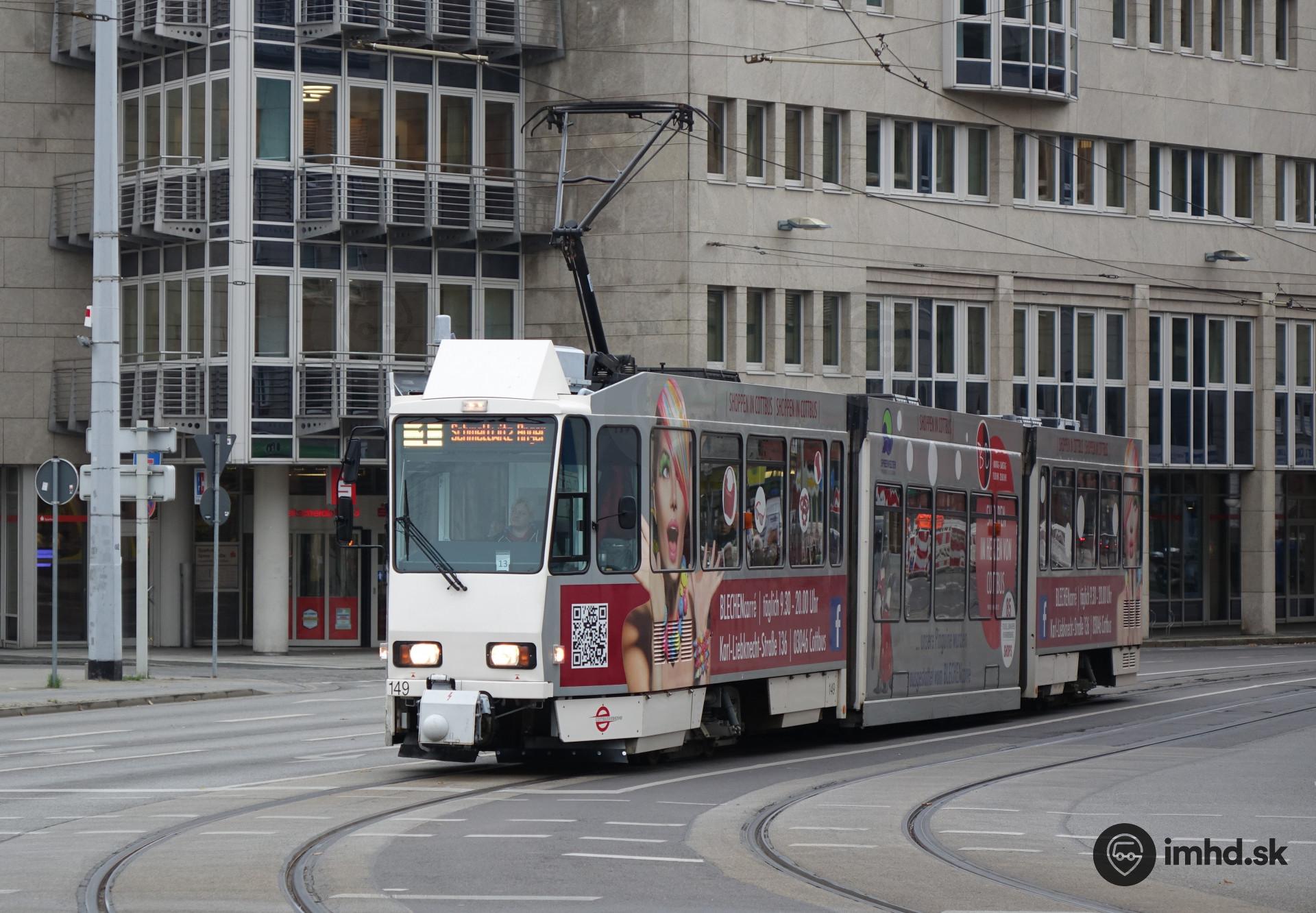 Jedna z 21 prevádzkovaných električiek KTNF6, ktorý je jediným nasadzovaným cottbuským typom