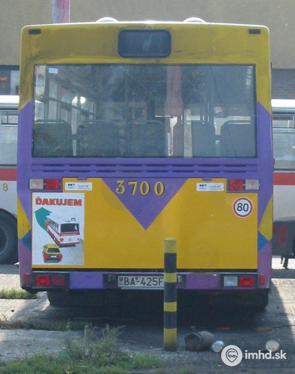 | Tam-Bus 232 #3700 s novým nevkusným náterom zadného čela, ktorý dostal po oprave po požiari motora. Treba dodať, že pôvodný farebný vzor na zadnom čele bol úplne iný. | |