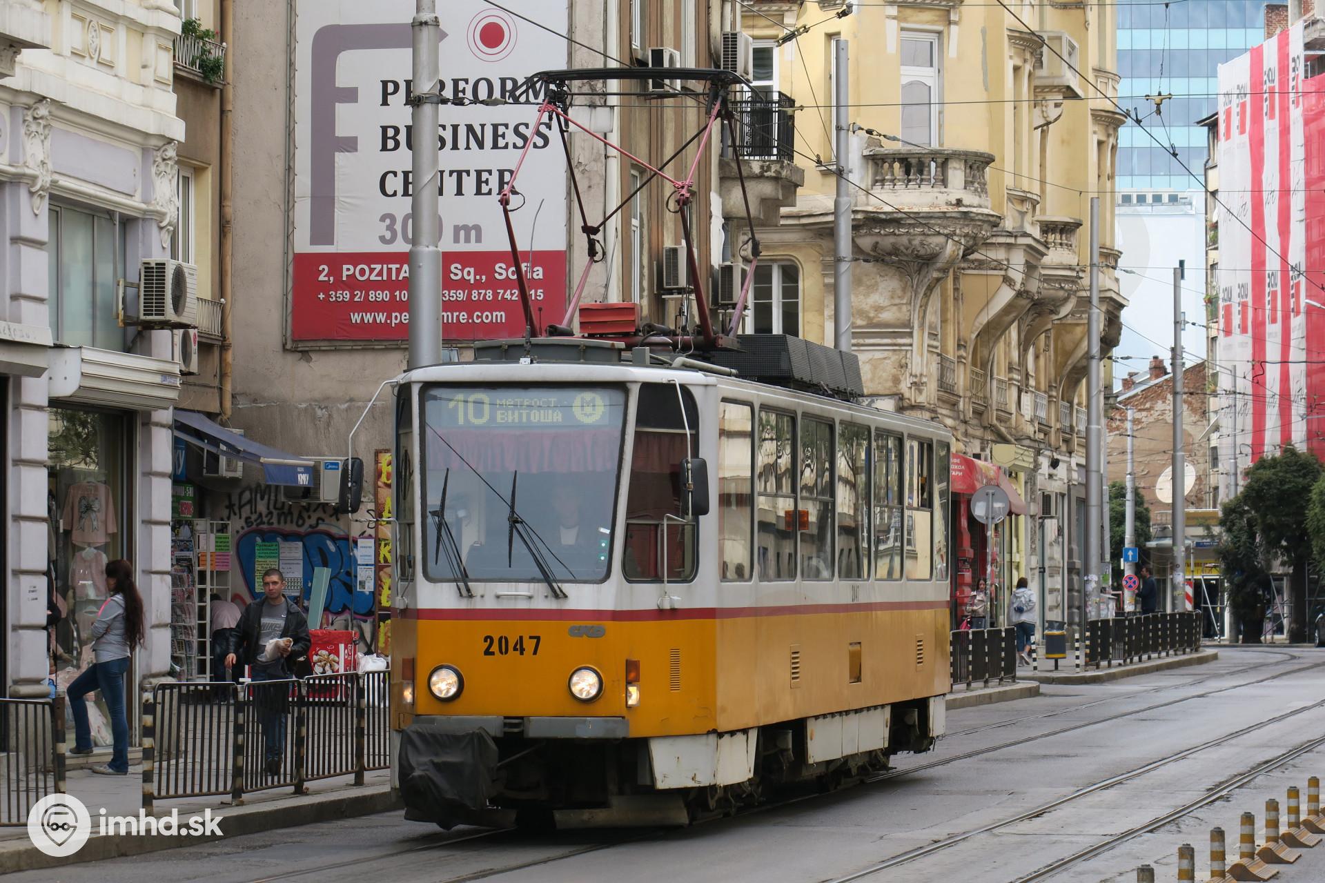 Električka T6A2 smeruje na konečnú Vitoša pod rovnomennou Horou.