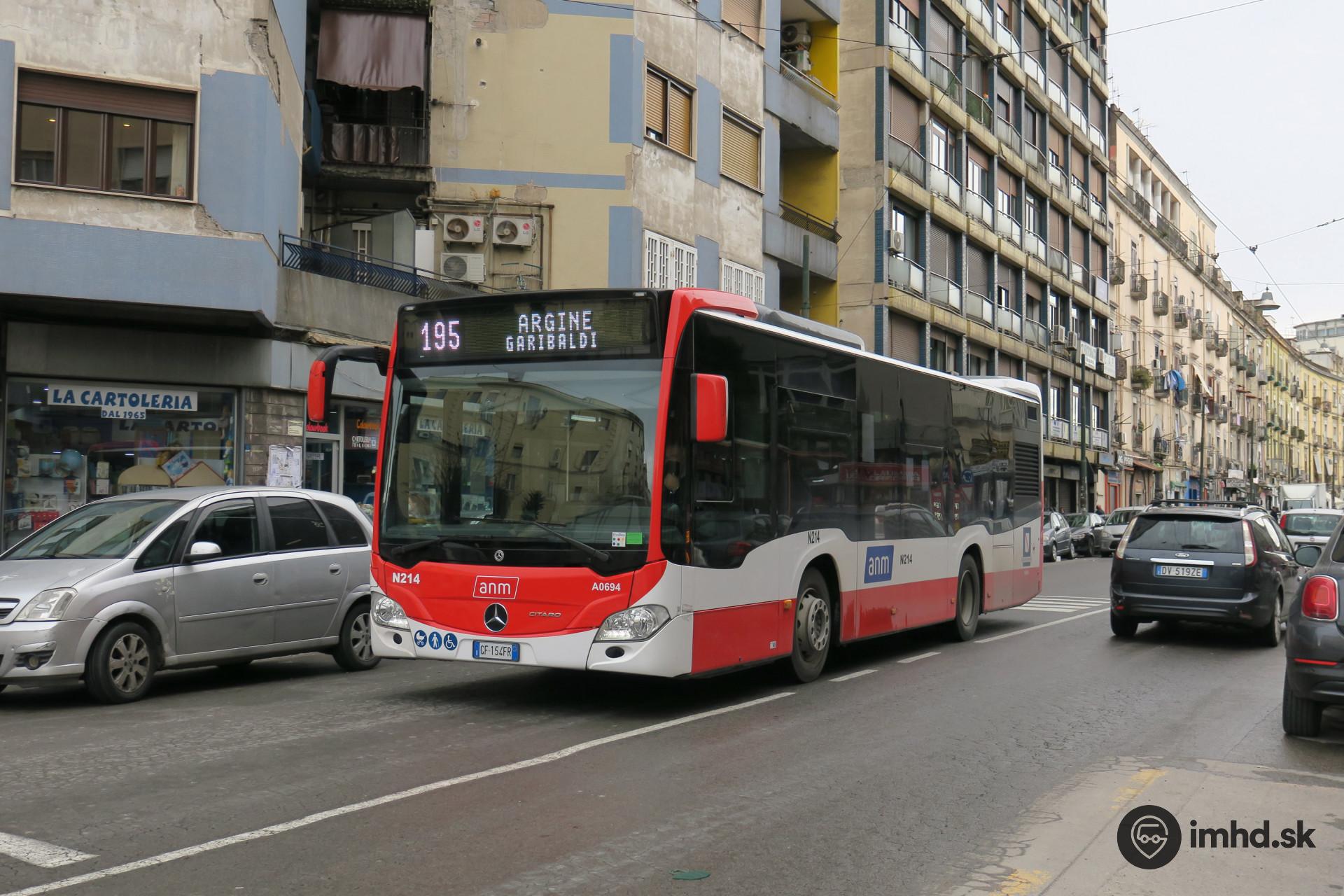 Citaro mestského dopravného podniku ANM - Azienda Napoletana Mobilità smeruje na východné predmestie Neapolu.
