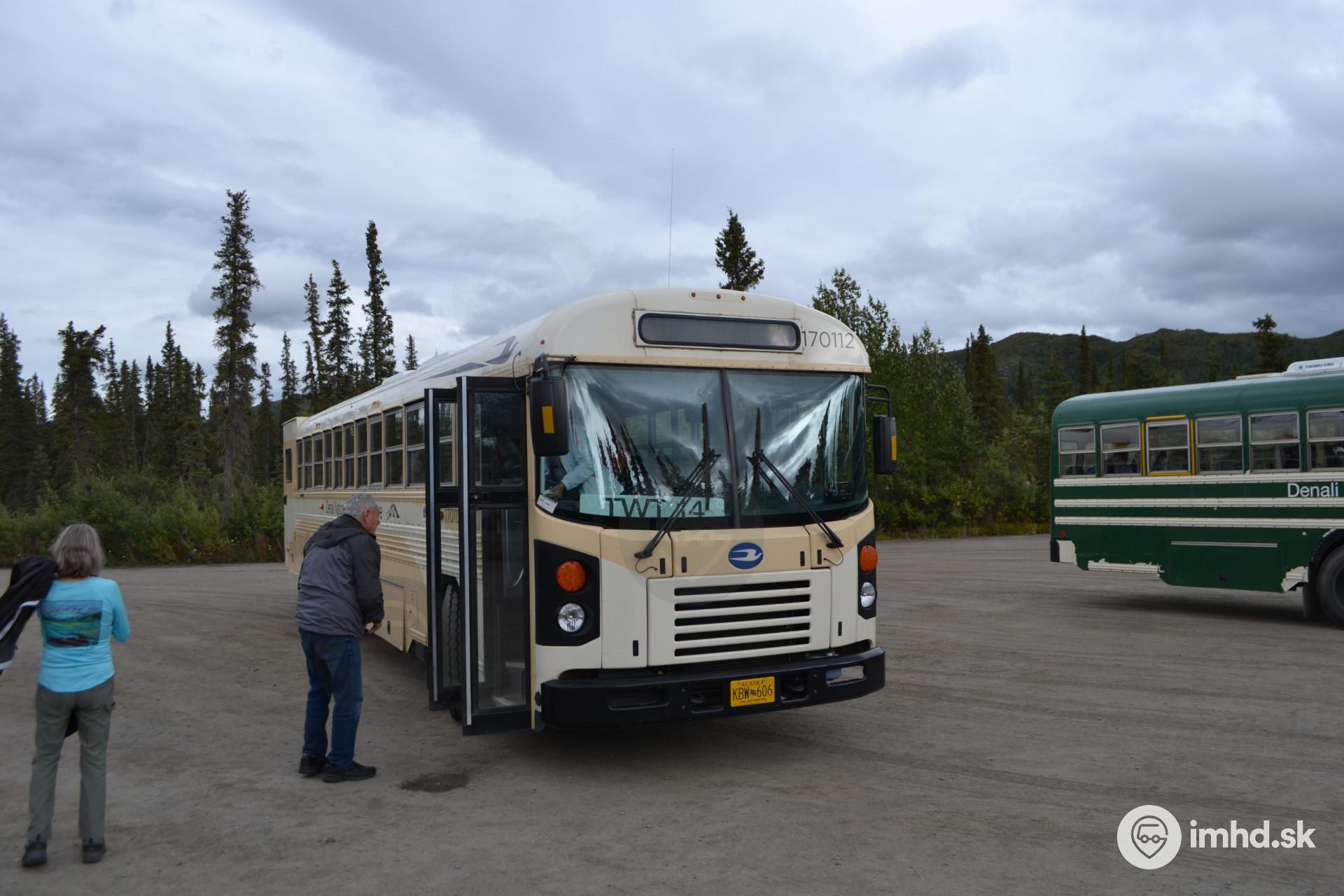 Autobus na turistickej trase Tundra Wilderness Tour v NP Denali na Aljaške