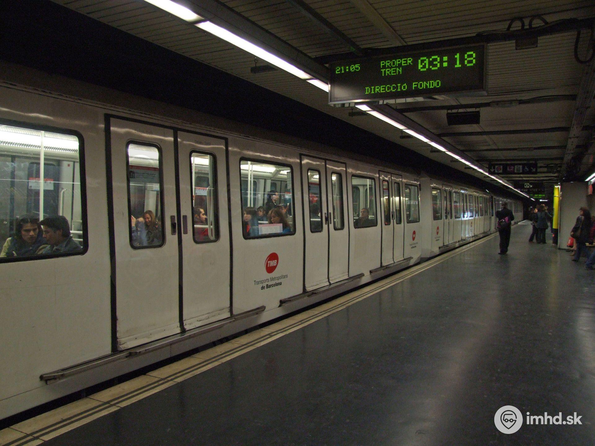 Súprava metra radu 4000 na stanici Universitat. Cestovná rýchlosť v metre je 27 km/h.