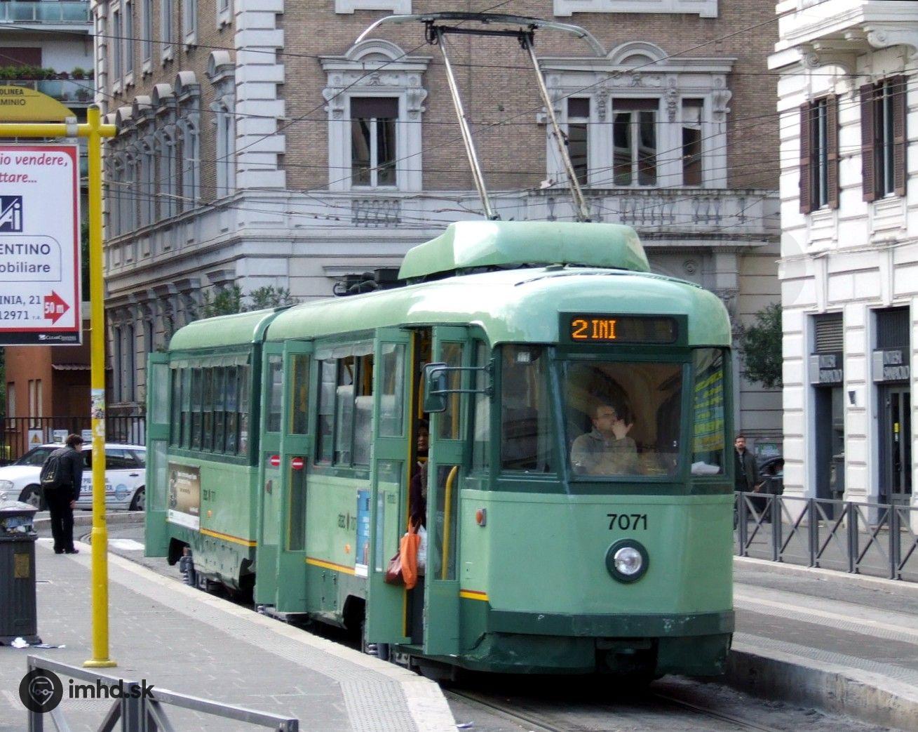 Električka Stanga #7071 z prelomu 40. a 50. rokov 20. storočia na zastávke Piale Flaminio.