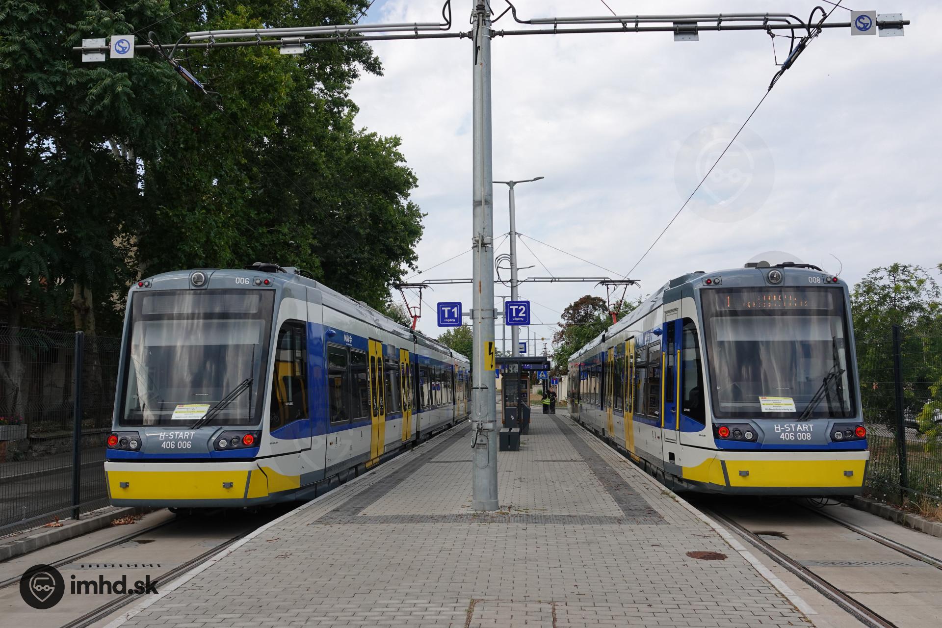 Nástupište tram-trainov pri železničnej stanici Hódmezővásárhely, kde sa trate električky a železnice nespájajú