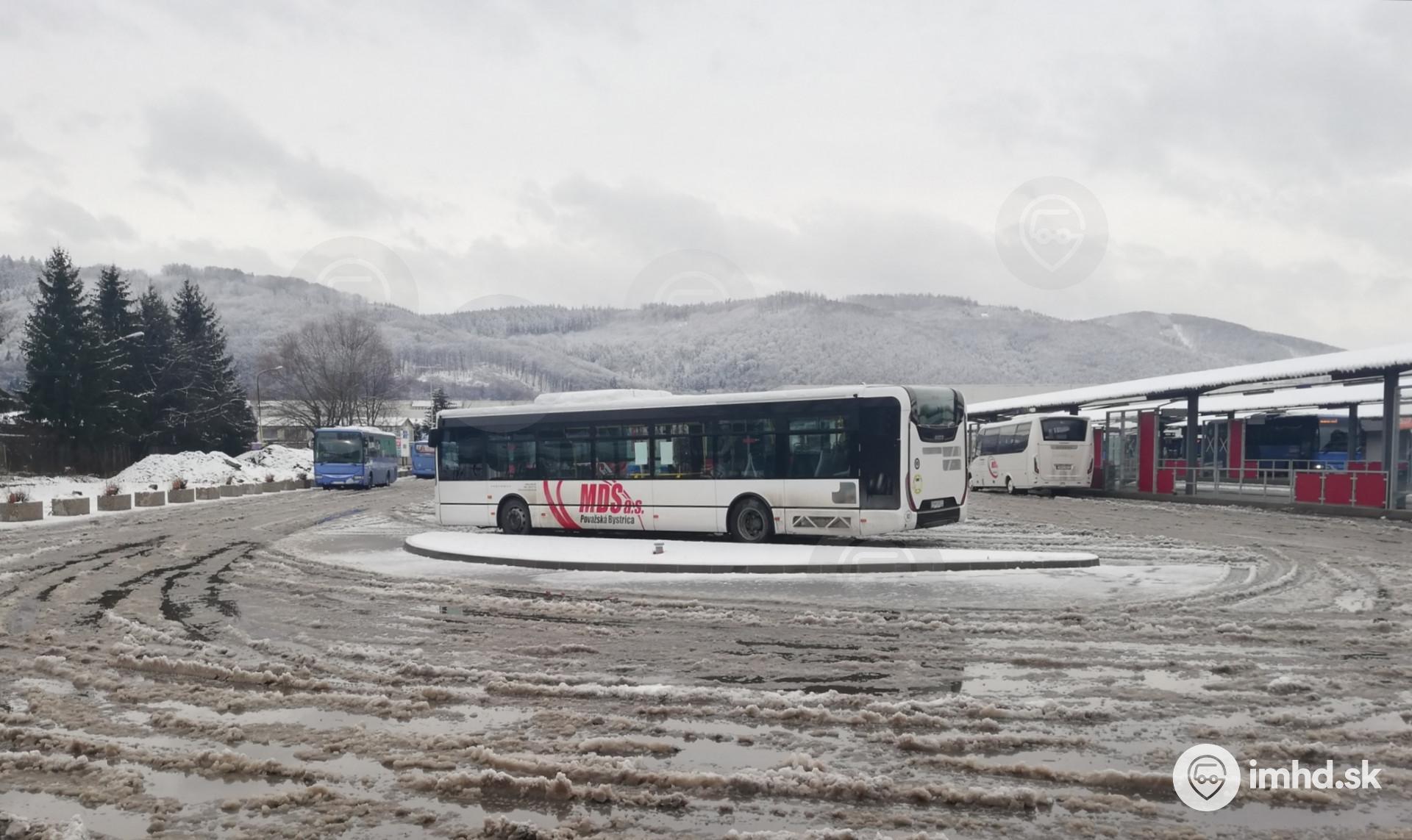 Iveco Urbanway 12M prestávkuje na odstavnej ploche za zrekonštruovaným autobusovým nástupišťom.