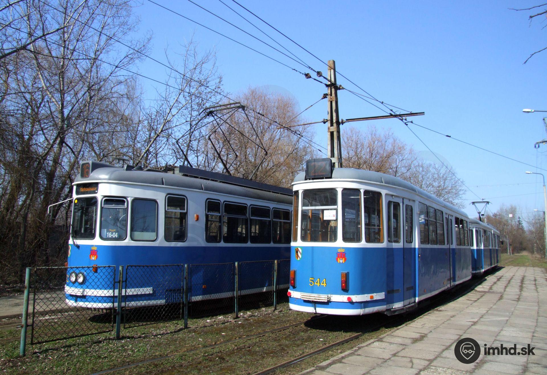 Konečná zastávka Walcownia s električkami MAN GT6 + B4 pôvodom z Norimbergu