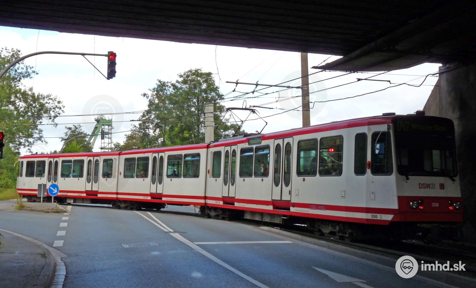 Düwag B80C/8 vychádza z tunela v banskej oblasti