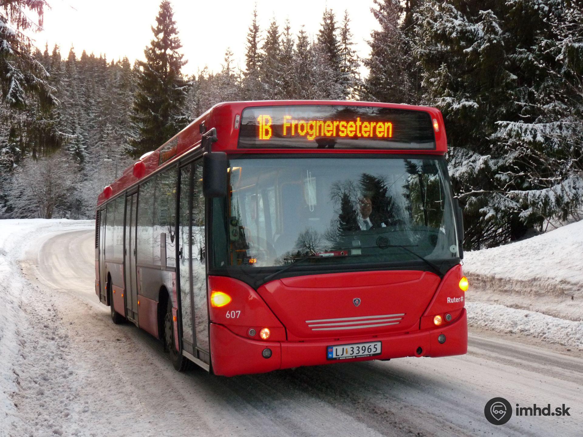 Scania OmniCity #607 v zasneženej prírode nad Oslom.