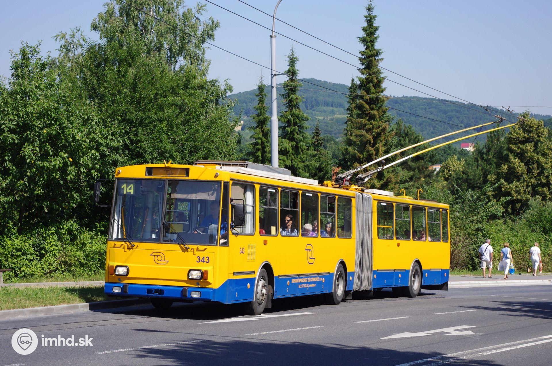 Škoda 15 Tr #343 odchádza zo zastávky Družstevní-Internext.