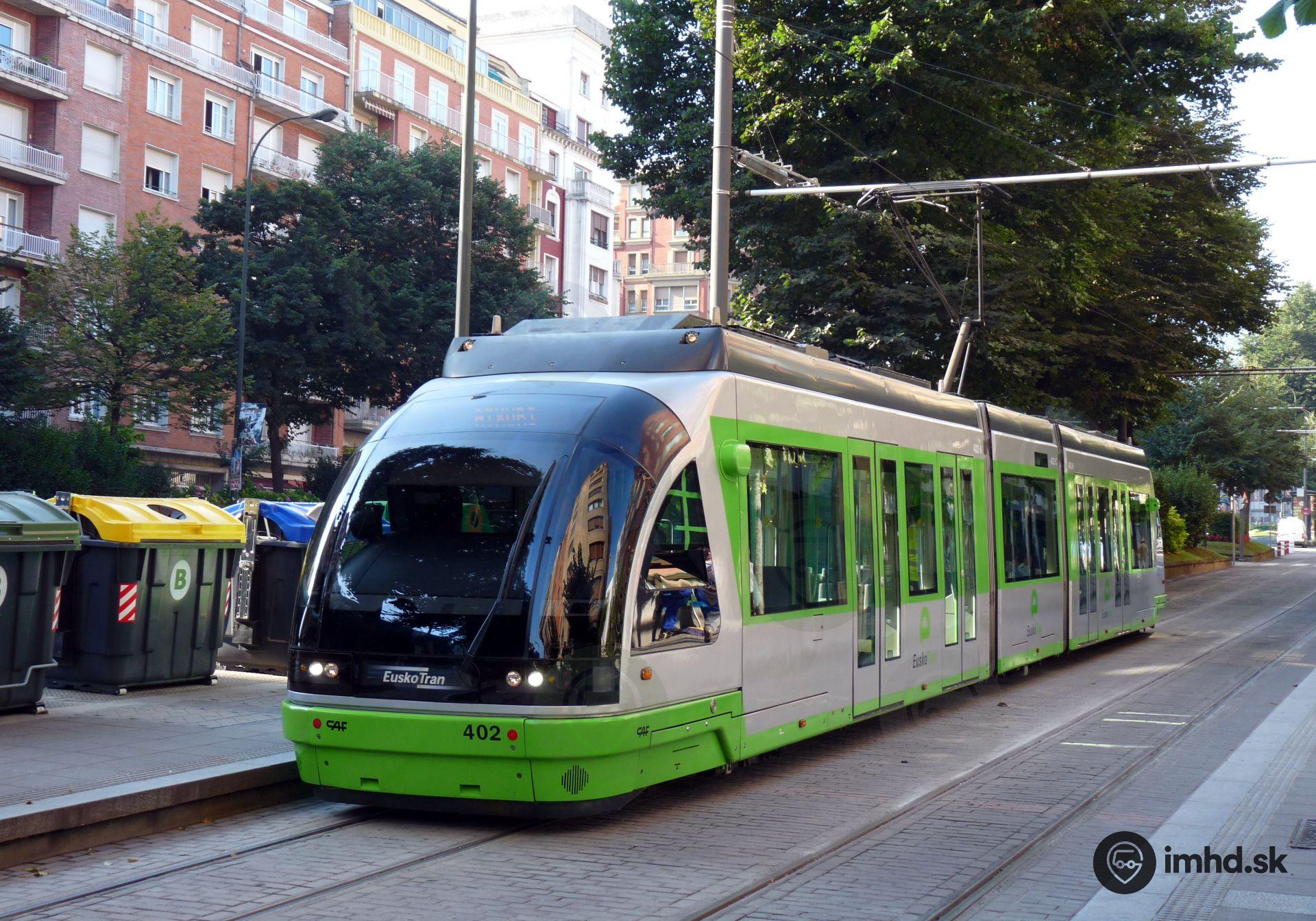 Moderná električka Urbos bola v Bilbau postavená na rozchode 1000 mm, jazdia na nej nízkopodlažné električky výrobcu CAF.