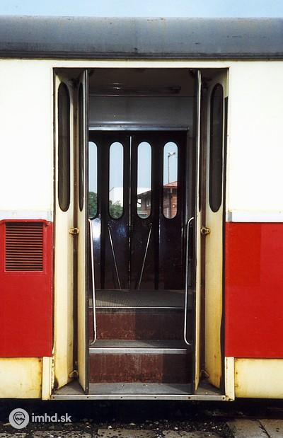 Dvere električky EMU 89.0 (420.966-4), ktorými za 33 rokov prešlo nespočetné množstvo cestujúcich.