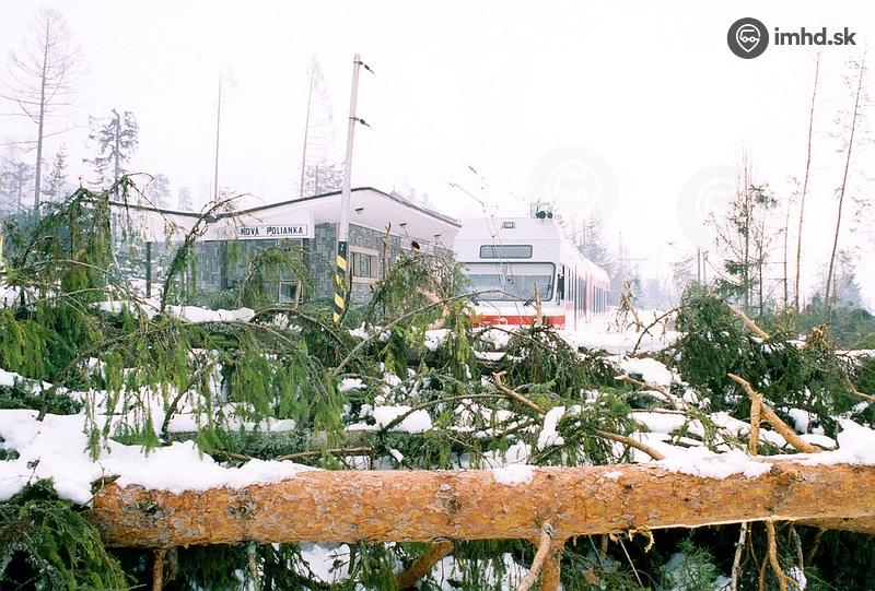 Zavalená trať električky vedúca z Novej Polianky smerom na Štrbské Pleso týždeň po ničivej veternej smršti. Električka 425.955 mala šťastie, že ju nezasiahli padajúce stromy počas veternej smršte. Veľkú zásluhu na tom mal vodič, ktorý ju zaparkoval mimo dosahu stromov a taktiež odviedol cestujúcich do bezpečia. Paradoxom je, že o pár dní nato tento vodič dostal výpoveď.