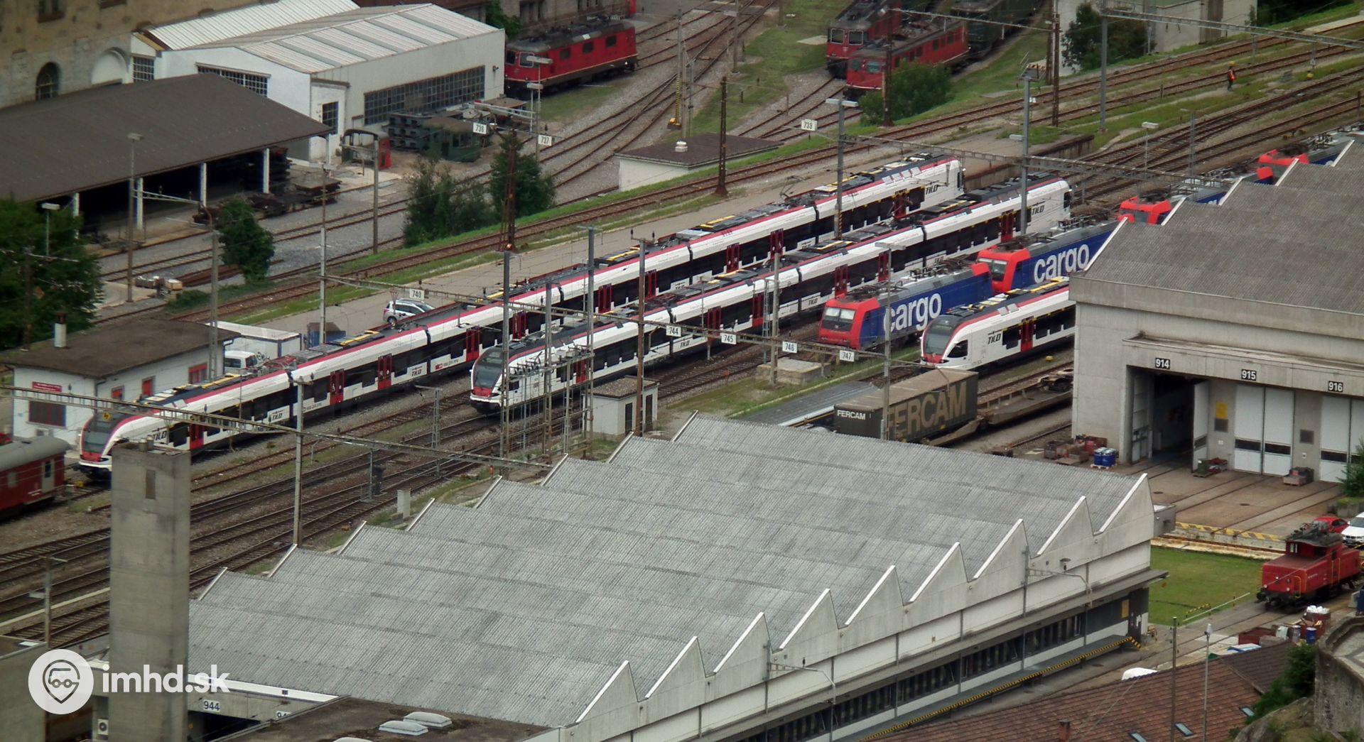Železničná stanica v Bellinzone s prímestskými vlakmi zabezpečujúcimi dopravu na linkách S.