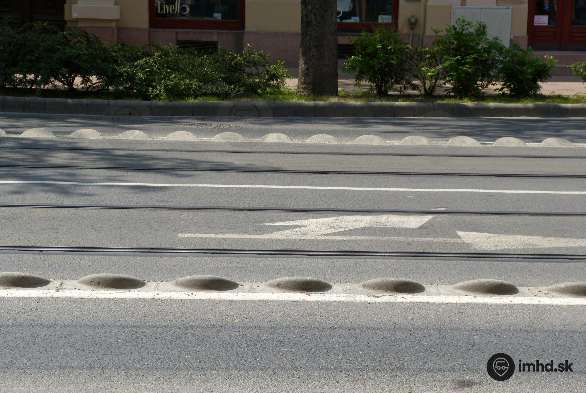 Spoločná električková trať s autobusmi a trolejbusmi oddelená od áut.