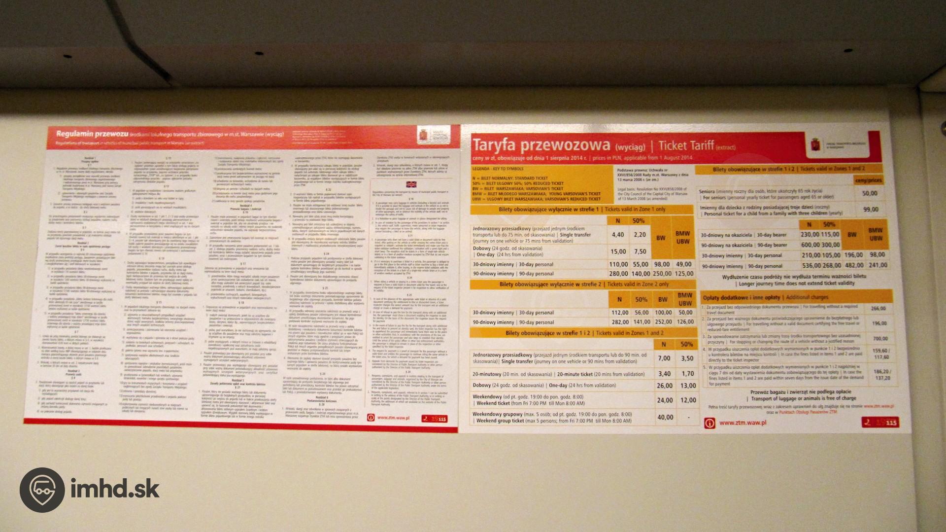 Prepravný poriadok a tarifa.