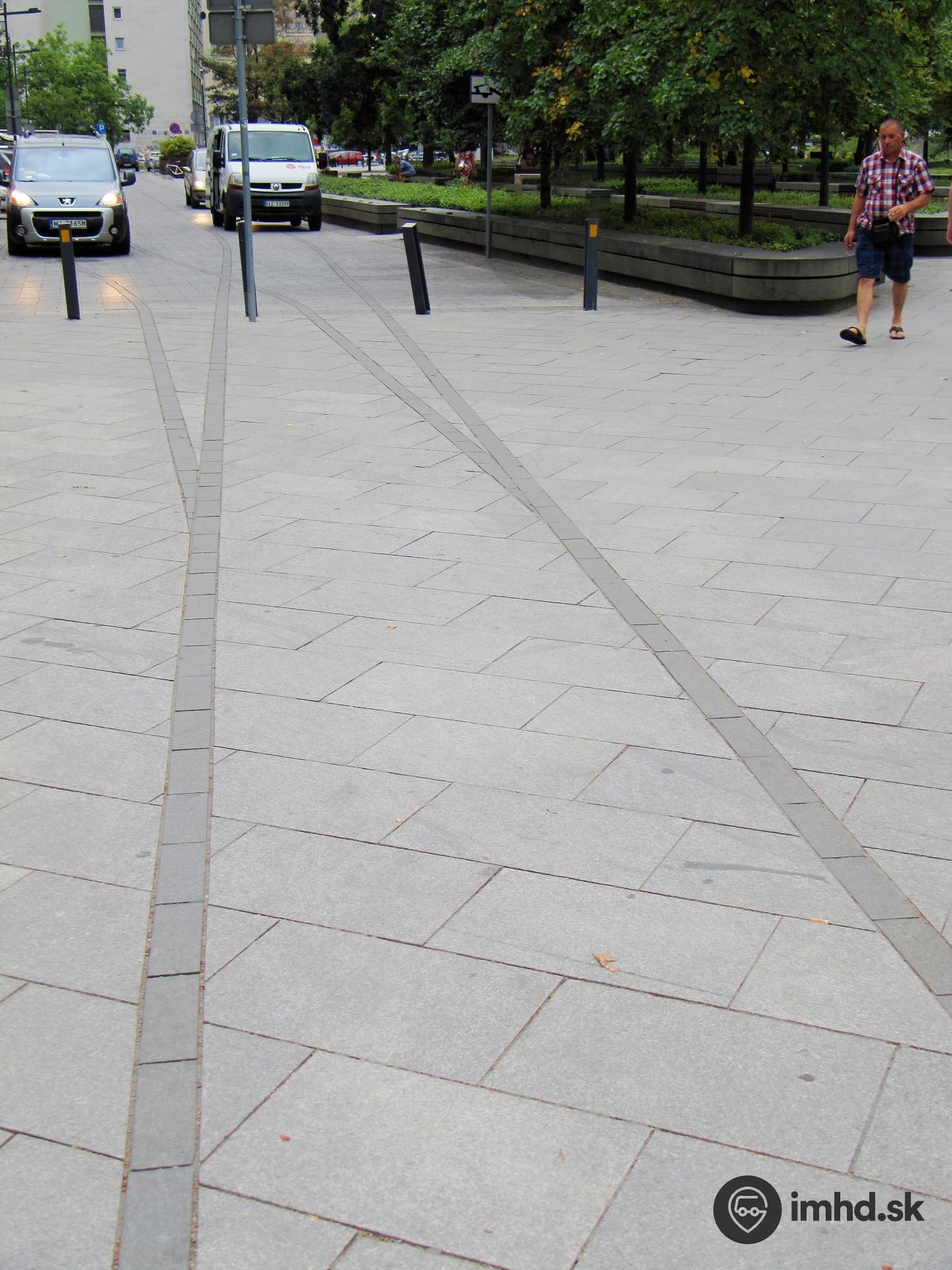 Električkové obratisko Plac Grzybowski, zrušené v roku 1987, aj po rekonštrukcii námestia a priľahlého parčíku pripomína dlažba.