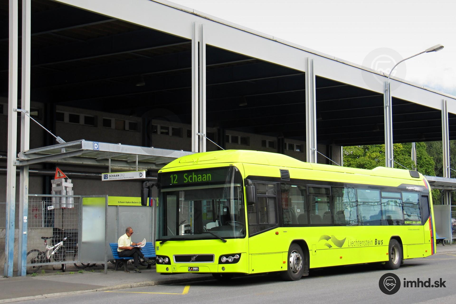 Volvo a jeho vodič čakajú na odchod linky 12 do lichtenštajnskeho Schaanu zo švajčiarskeho Buchsu.