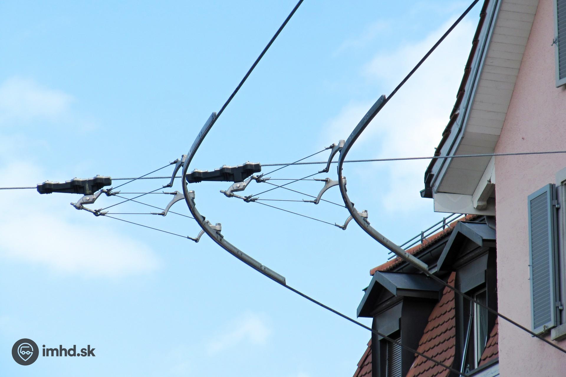 Uchytenie oblúka trolejového vedenia.