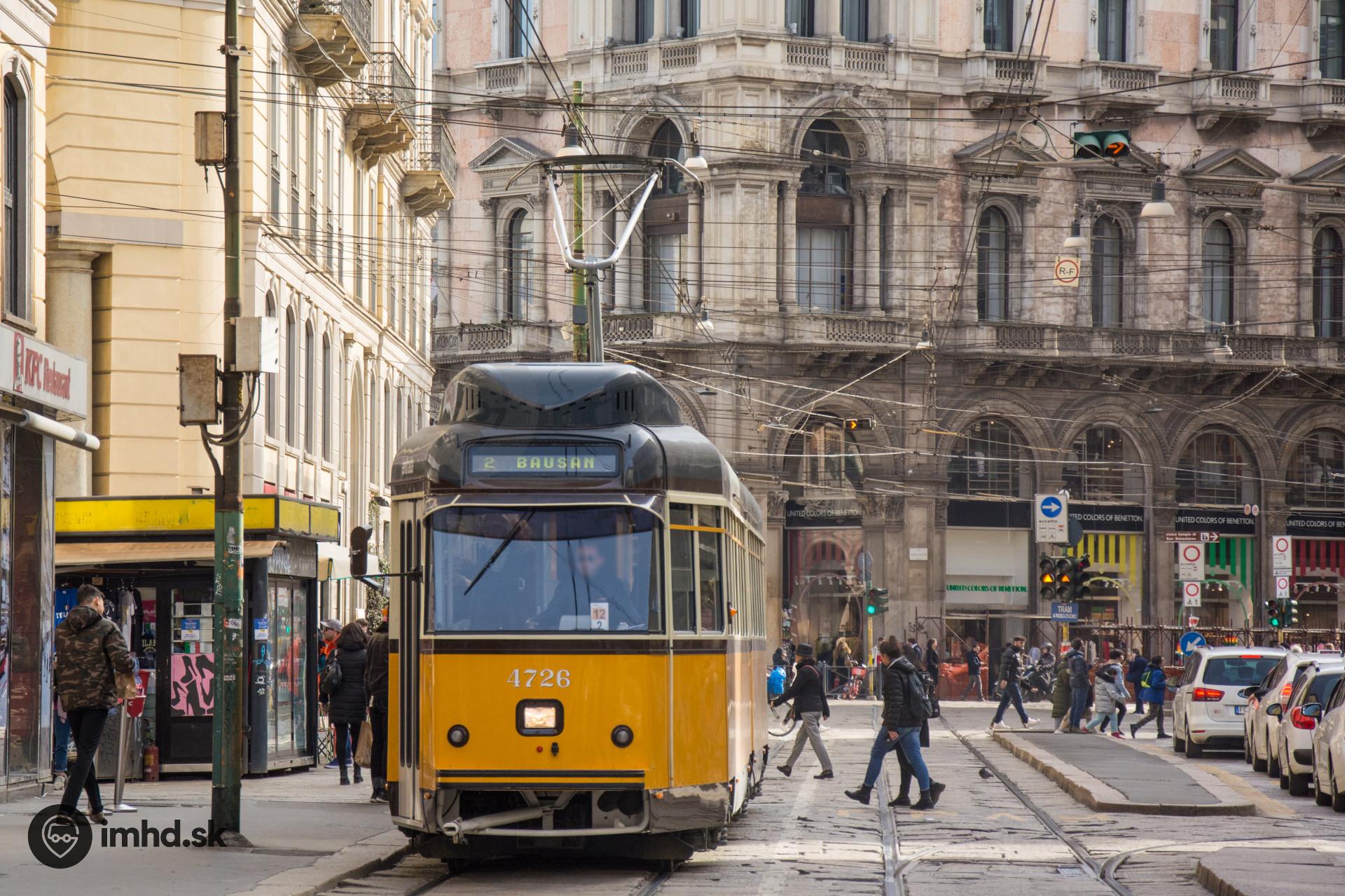 Električka série 4700 prechádza centrom Milána