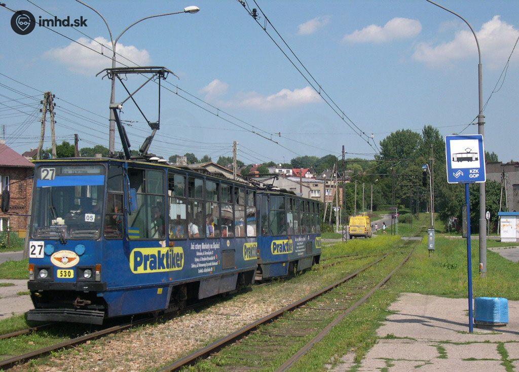 Súprava Konstal 105Na č. 530+540 prišla z jednokoľajnej trate v Sosnowci.