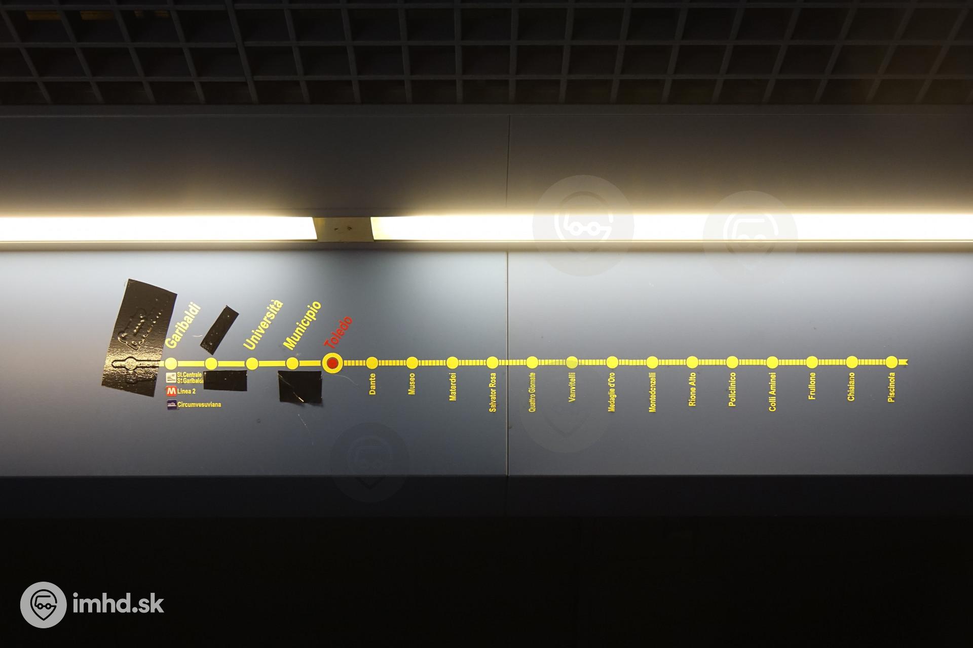 | Stanica Toledo z roku 2012 síce získala cenu za dizajn, ale navigácia pre cestujúcich vyzerá takto. Navigácia bola zjavne pripravená na ďalšie rozširovanie metra, každopádne ľavá stanica ani po 9 rokoch nebola v prevádzke a ďalšia čiernou páskou prekrytá stanica bola v čase fotografovania otvorená už niekoľko mesiacov, ale tu bola stále prekrytá. | |