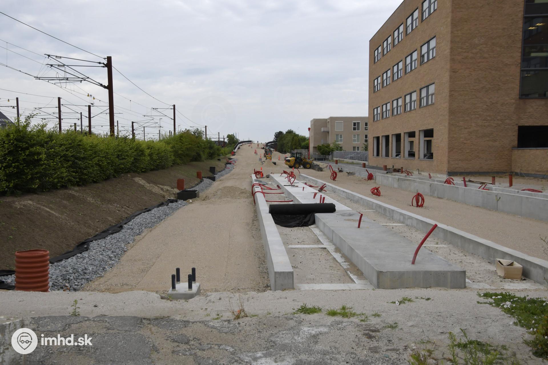 Výstavba električkovej zastávky pri stanici Glostrup.