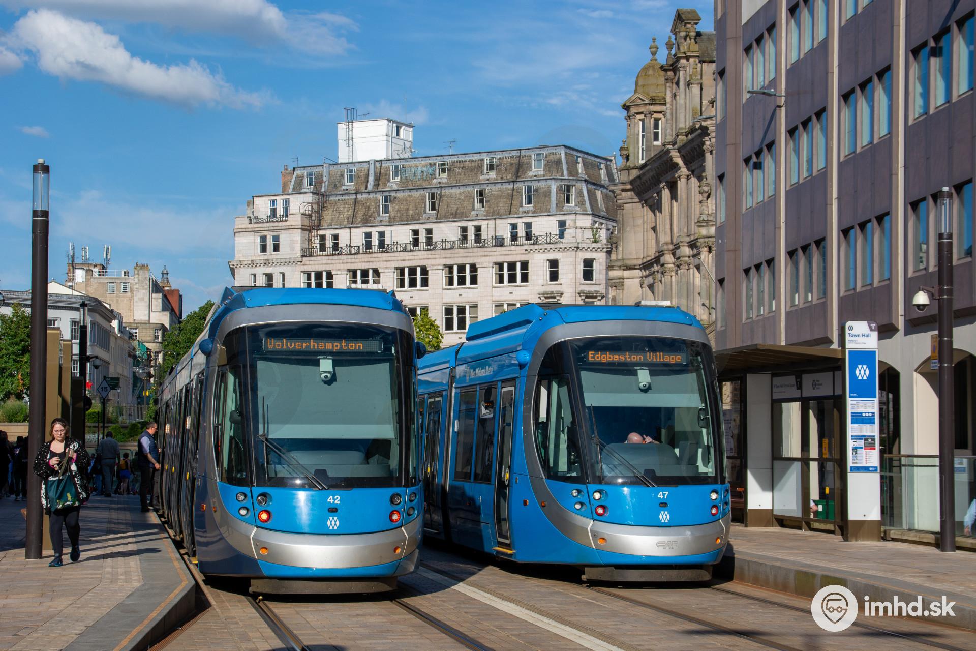 Električky CAF Urbos 100 na zastávke Town Hall