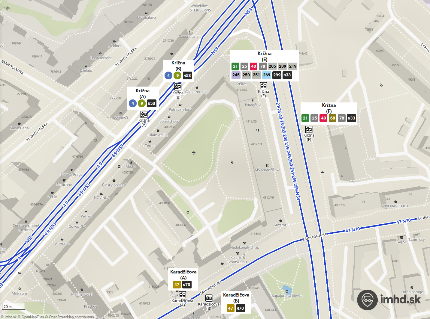 OpenMapTiles, OpenStreetMap contributors, imhd.sk