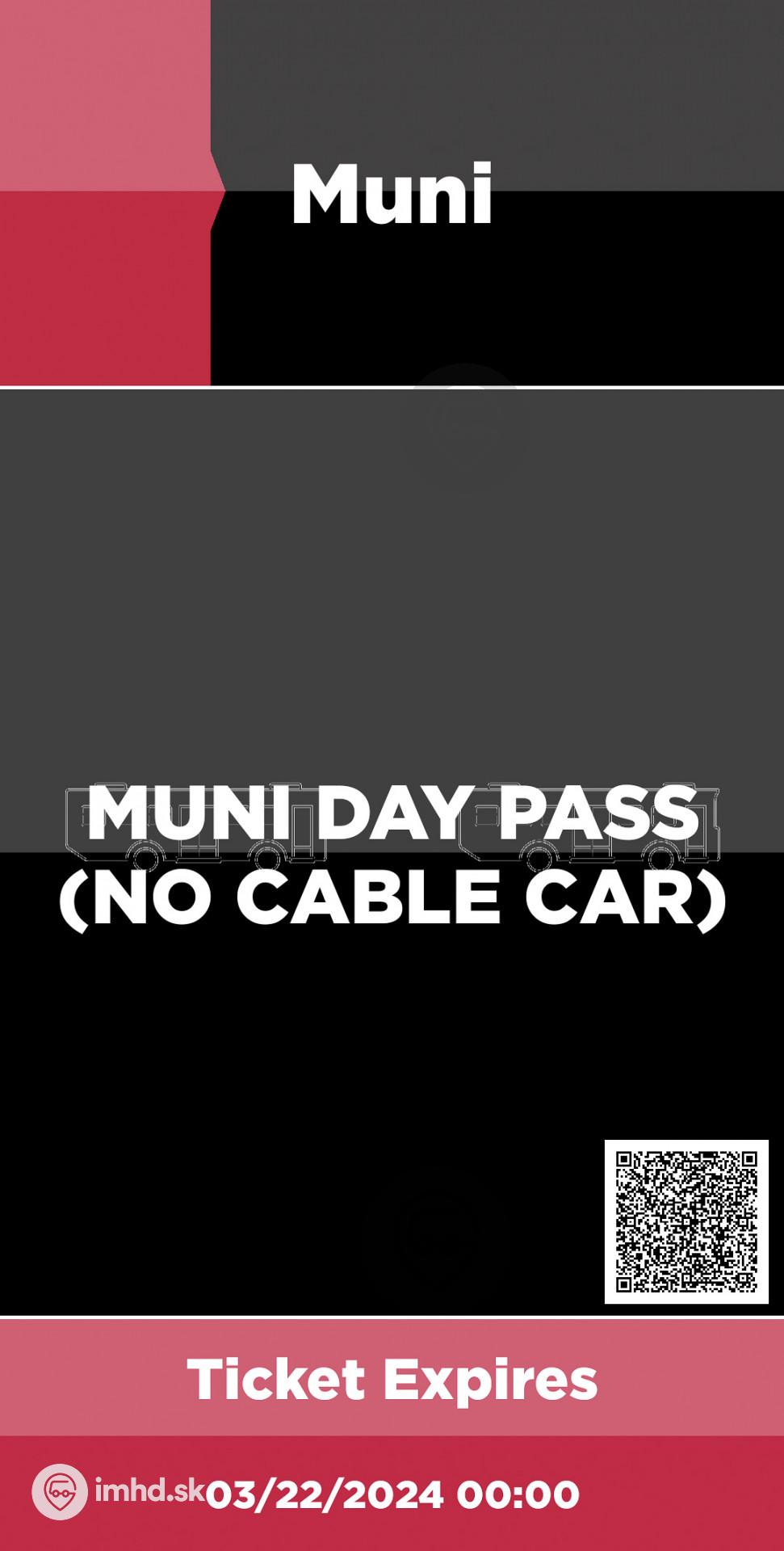 Denný lístok na MHD v San Franciscu okrem metra a lanoviek zakúpený cez mobilnú aplikáciu dopravného podniku.