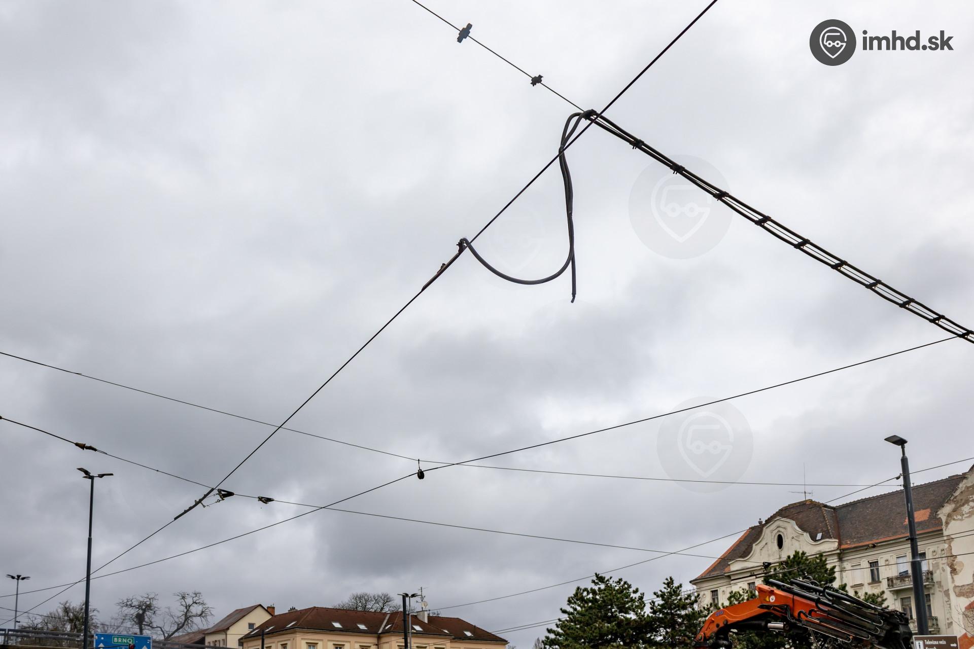Trolejové vedenie, ktoré poškodilo prechádzajúce nákladné auto