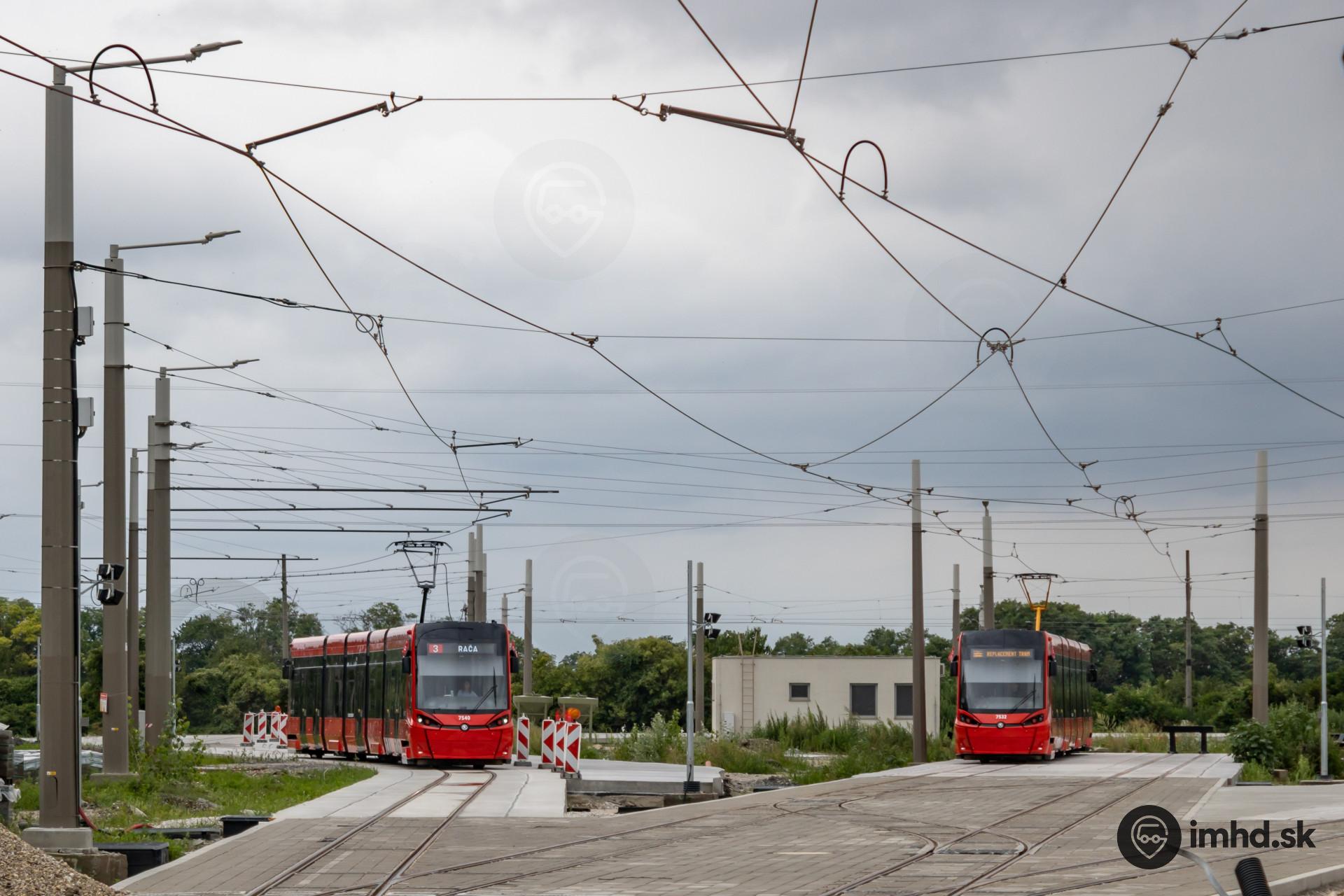 #7540 na linke 3 a záložné vozidlo #7532 na nedokončenom obratisku Janíkov dvor